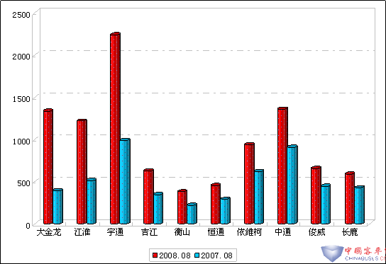 表一:2008年前8月小型客车销售增长前10名企业排名表 单位:辆