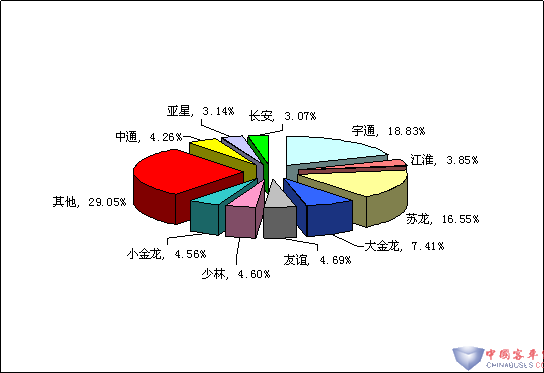表一:2008年前8月中型客车销售量前10名企业排名表 单位:辆