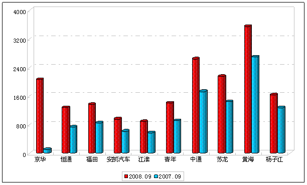 注:由于存在边际报酬递减规律,2008年前9月累积销售量未超过200辆大型客车的企业未纳入统计体系。