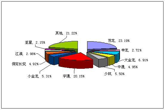 表一:2009年1月中型客车销售量前10名企业排名表 单位:辆