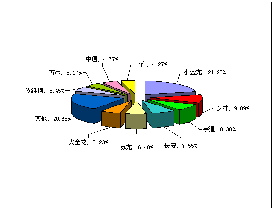 图一:2009年前2月小型客车销售前10名市场份额图