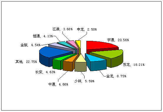 表一:2009年前3月中型客车销售量前10名企业排名表 单位:辆