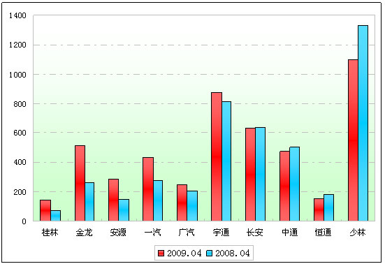 图一:2009年前4月小型客车销售增长前10名销量图