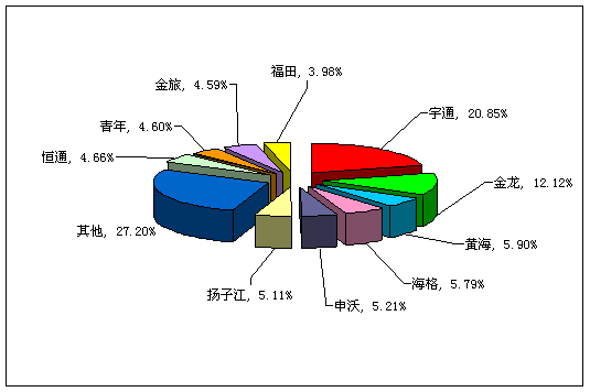 图一:2009年前9月大型客车销售前10名市场份额图