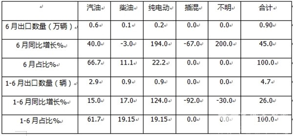 表1,2025年6月及前6月各动力客车出口数量及同比增长(数据来源:海关)