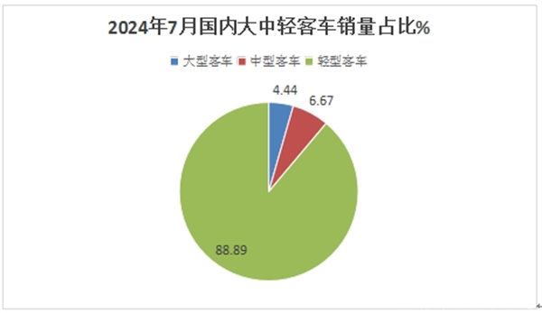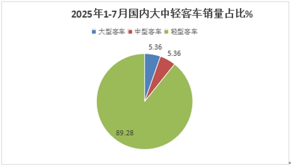 上图可见,在2025年7月国内大中轻客车各细分市场中: