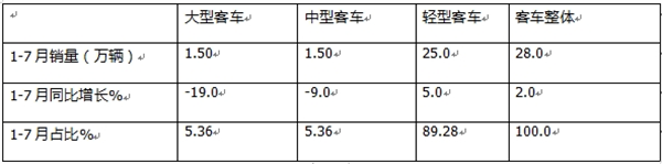 一是在高铁、航空及私家车等多元交通工具的挤压下,国内公路客车“大转小”趋势明显,特别是5-6米轻型公路客车成了市场需求的重要车型,因此推高了今年前7月轻客的销量;