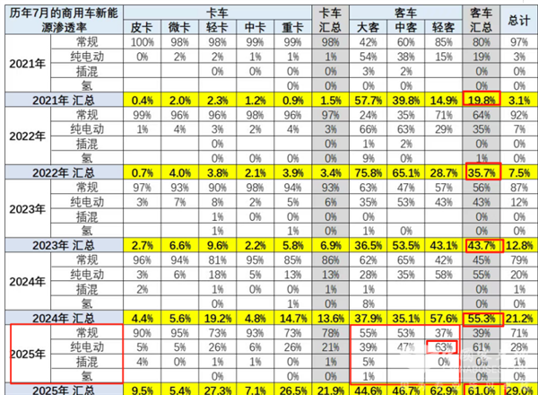 截图2,近5年7月我国各类商用车新能源渗透率(来源:中国汽车流通协会提供的上牌信息)