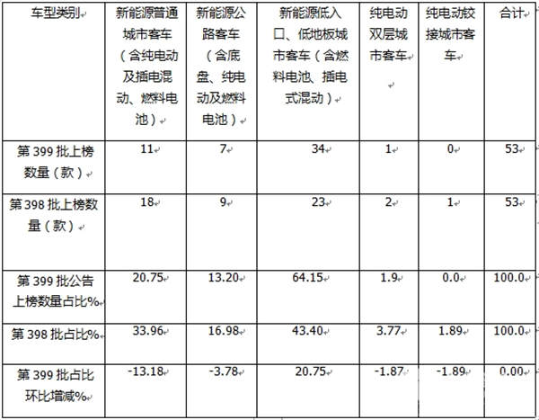 第399批新能源客车:上榜53款!纯电动地位减弱、低地板(低入口)领涨领跑