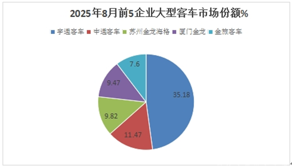 前5车企2025年前8月大型客车累计市场集中度达到72.1%,可见今年1-8月大型客车市场垄断程度也较高。