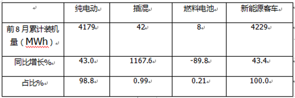 二、8月及前8月新能源客车动力电池装机量整体情况简析