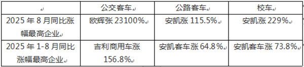 截图2,2025年1-8月客车各细分市场同比增长最猛的车企(数据来源:慧眼看车)