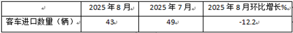 表1,根据中国汽车流通协会提供的海关数据,2025年8月我国客车进口数量环比下降%:
