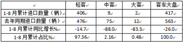 前8月我国客车进口:同比降26% 轻客领跑领涨 柴油占比超9成