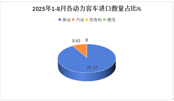 上图表显示,在2025年1-8月我国各类动力客车进口市场中: