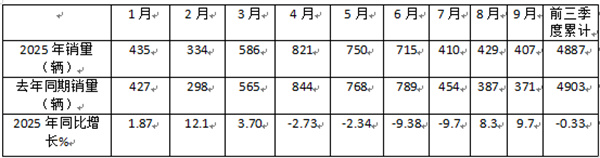 表1,根据终端上牌信息,2025年前三季度各月燃气客车销量及同比: