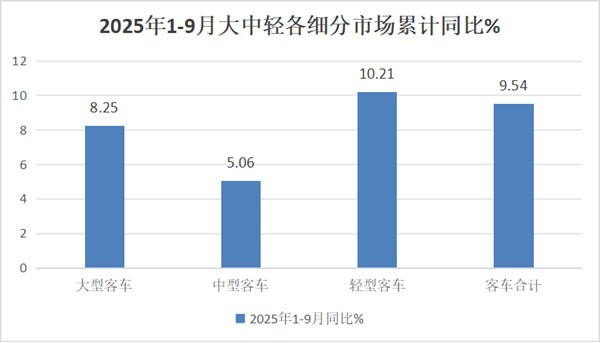 上图表可见,在2025年前9月大中轻客车累计销量及同比中: