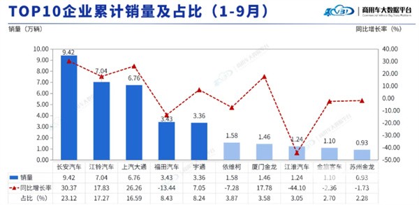特点六、前9月累计:长安、江铃、大通居前三,长安领涨