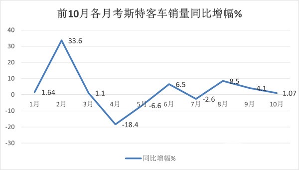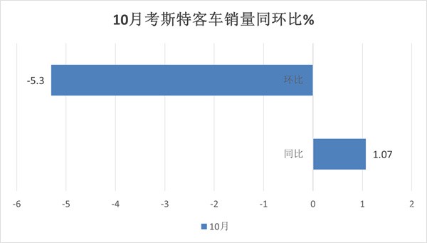 一是今年去年同期销量基数不高,给今年10月同比增长奠定了基础。二是纯电动考斯特客车在公路客车电动化提升的大背景下销量增加,给整体销量增长提供了支持。