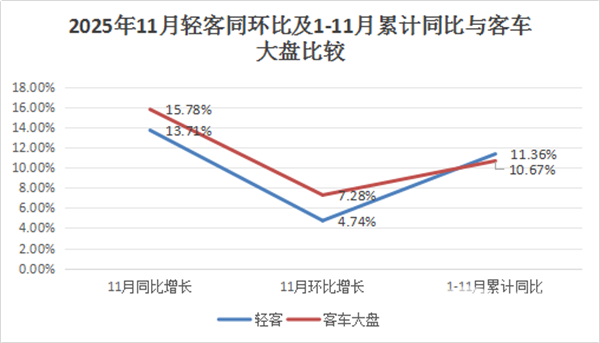 总之,2025年11月轻客销量同环比跑输、累计同比跑赢客车大盘。