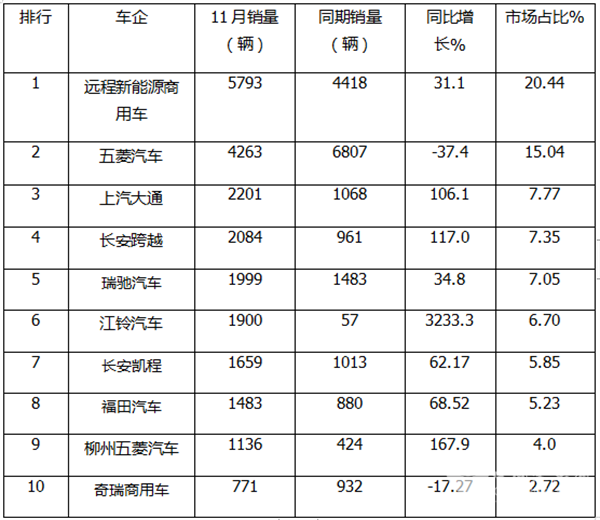 11月新能源轻客:销2.83万辆 大面抢眼 远程连冠