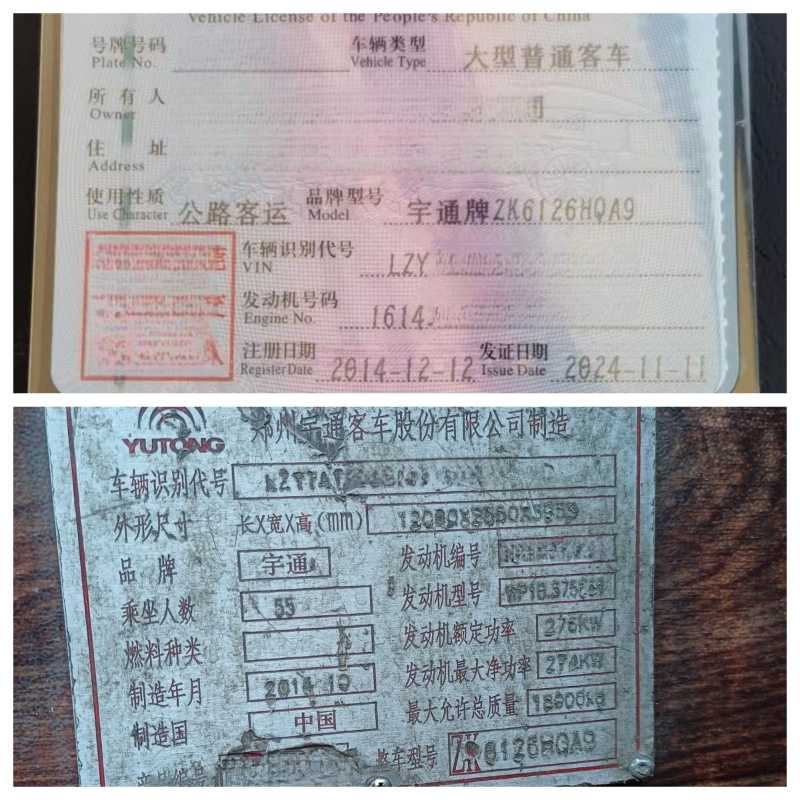 客车品牌 | 宇通客车 | 上牌时间 | 2014-12-17 |