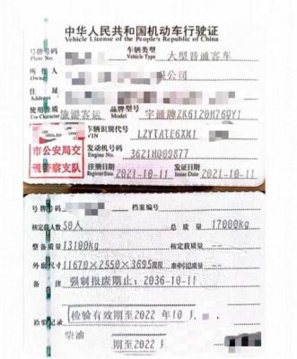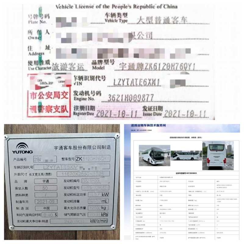 2021年10月上牌多台北方配国六有公告50座宇通6120气囊旅游车