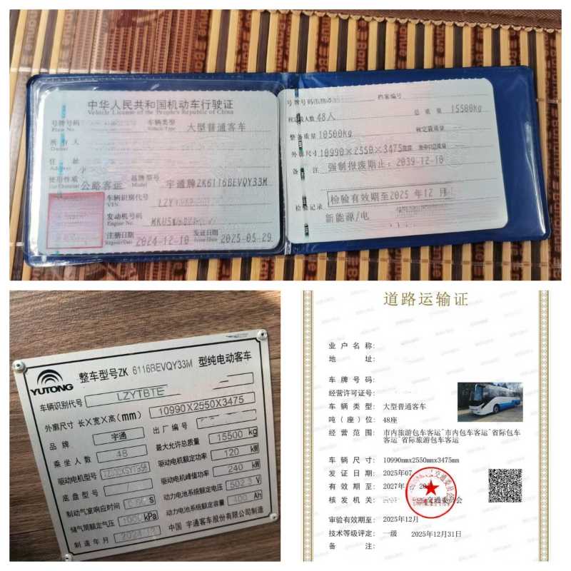 2025年早产20天有公告48座宇通营运版大电量新能源电车,2024年12月上牌宇通6116,深澜动力宁德电芯200度电池,电池加热,司机独立驾驶室,木纹地板,大型高一级公告,皮质座椅,行李架,公路客运可提营运!新能源电车还有金旅255度,宇通157度高密非营运有公告,303度12米50座旅游车,欢迎私信,接受置换。 本公司接受客车置换(国三国四国五,非营运,旅游客运,公路客运,公交客运都可以)。我们有着丰富的外迁内地城市经验。也可做正规出口手续。我们在广东省珠三角区域(深圳、广州、珠海、佛山、东莞、惠州)从事二手车数十年,全部是薄利多销的价格出售,不管是单台还是批量•均享受最诚信的合作态度。也可以根据您需要的指定车型来优选匹配,柴油.油电混合、新能源纯电动均可在珠三角区域看到现车,各种品牌都有,油车,新能源电车,油电混合,天然气客车等,可安排师傅代驾送车,或者物流配送发往全国。我们的宗旨:不但销售的车型丰富多元化,服务更是全方位:可视频看车定车,可代驾送车。另外本公司常年收购2座-55座客车,中巴、大巴都可以操作。 公司地址:1、深圳市南山区西丽街道曙光社区云家供应链有限公司宿舍101车友汇鑫汽车贸易有限公司 2、深圳罗湖区宝岗路1号淘车吧