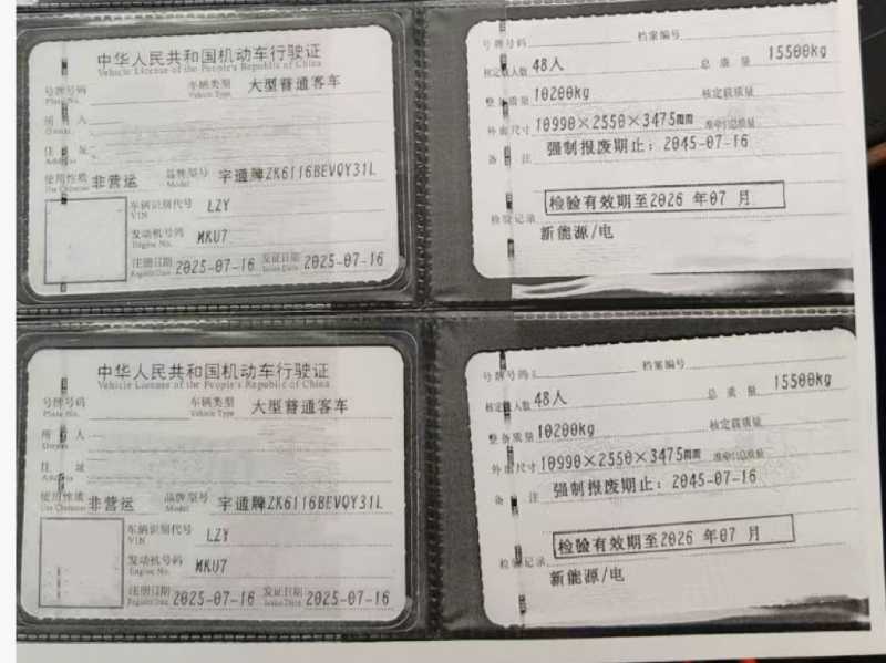 2025年7月上牌48座非营运有公告宇通6116新能源电车