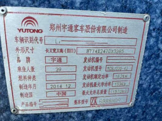 客车品牌 | 宇通客车 | 上牌时间 | 2015-01-13 |