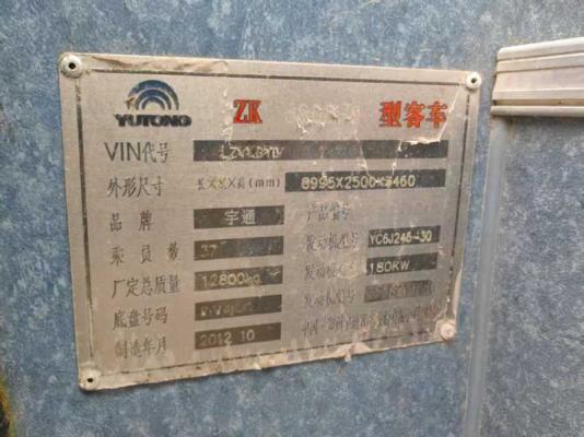 客车品牌 | 宇通客车 | 上牌时间 | 2013-01-09 |