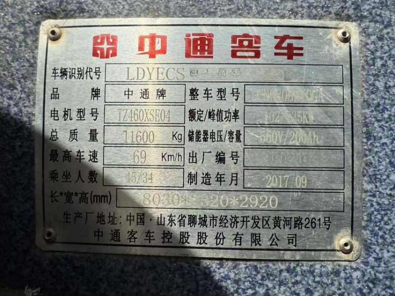 客车品牌 | 中通客车 | 上牌时间 | 2017-11-22 |