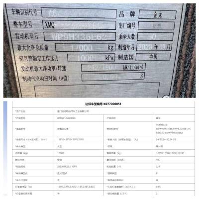 2023年9月上牌国六有公告50座金龙6125有司机睡仓旅游车