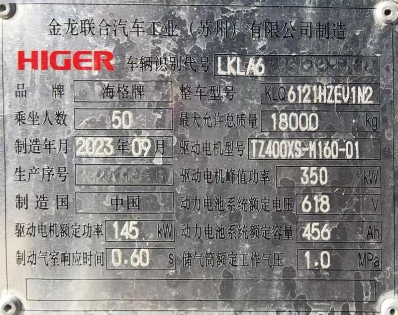 客车品牌 | 海格客车 | 上牌时间 | 2023-09-22 |