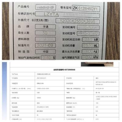 2022年上牌东北配国六有公告50座宇通6128气囊旅游车