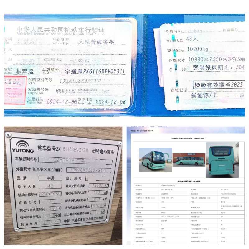 2024年11月上牌一批质保10年准新有公告48座非营运宇通宁德时代电车