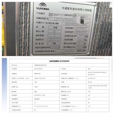 客车品牌 | 宇通客车 | 上牌时间 | 2021-12-16 |