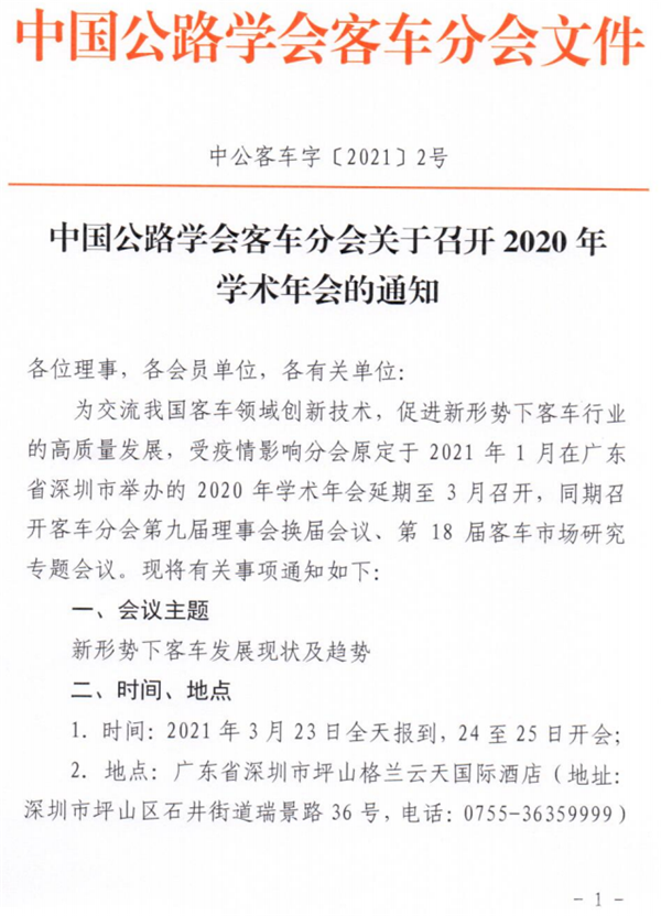 2021年3月4日,中国公路学会秘书处印发了《关于召开2020年学术年会的通知》。