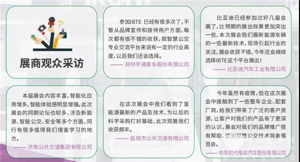 每年都参加这个展会,在各种细节方面,都明显地感觉到主办方的用心。展会期间了解到了公交客车行业的最新发展动向,同时也对例如氢燃料、轻量化、智能化等做了信息的收集,更为重要的是对以后客车业的发展有了更加清晰的判断。 ——上海燃料电池汽车商业化促进中心