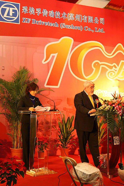 在此,我衷心祝愿采埃孚苏州公司及其全体员工在未来的日子里成功不断,幸福永远!同时,也请代我向你们的家人转达我最诚挚的谢意,正是由于他们的默默支持与付出才成就了采埃孚苏州今天的辉煌!