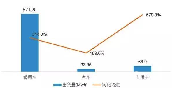 根据统计,2016年1-4月三元锂电池在乘用车、客车和专用车中的搭载量均实现了快速增长,同比增速分别达到344.0%、189.6%和579.9%。