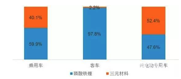 根据统计,2016年1-4月三元锂电池在乘用车和专用车中搭载量的占比分别达到40.1%和52.4%,而在客车市场的占比仅为2.2%。