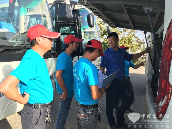 干燥,暴晒,发动机排查工作就在这样的环境下展开。一下午的时间,排查小组顺利完成18辆车发动机的检查,逐一排除故障隐患。