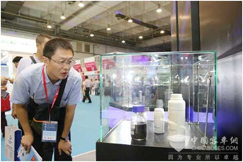 博览会现场展出的世界第一条石墨烯导静电轮胎,引起了观众的高度关注。