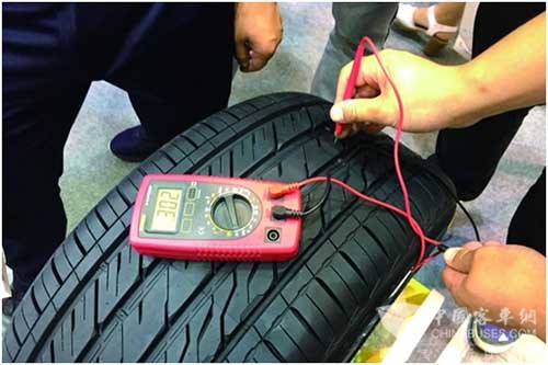 据工作人员介绍,普通轮胎主要是由橡胶制成,是不导电的,但这款轮胎可以有效导出静电。