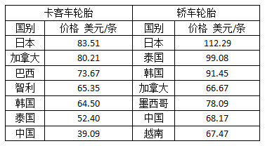 美国依据什么对中国轮胎“双反”?主要是依据其进口价格。将中国轮胎在美国市场的价格与其他国家比较,就可以看出问题所在。