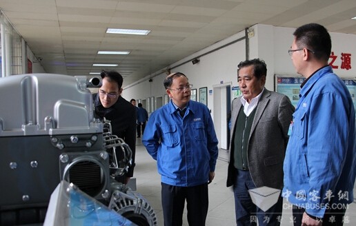 在玉柴股份总裁吴其伟等的陪同下,童东城一行参观了玉柴的车间。吴其伟向客人介绍了玉柴现有产品型谱、研发中心布局、无模快速制造技术、玉柴与MTU合资公司的主要产品、生产线智能化改造等情况。