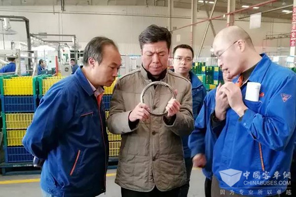调研期间,严鉴铂董事长特地来到液力缓速器生产线,详细询问液力缓速器新品项目的进展情况,要求咸阳分公司进一步加快新品试制进度,上下一心,攻坚克难,确保全面满足市场需求。严鉴铂董事长还深入咸阳分公司库房,对库房智能化改造项目提出了肯定,并对库房智能化项目二阶段工作作出了新的具体要求,同时对咸阳分公司现场自主改善、提高生产效率所作出的努力进行了表扬,鼓励大家再接再厉,持续加快现场改善步伐,深挖内部潜能,创新生产方法,提高生产效率,确保各项目标任务圆满完成,顺利实现完美收官。