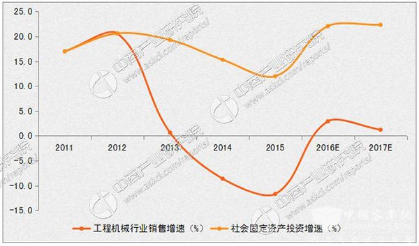 近十几年来,在全社会固定资产投资规模不断扩大的驱动下,我国工程机械行业快速发展。据中商产业研究院整理数据预测,今年工程机械行业销售增速有望达到2.9%;2017年将达到1.2%