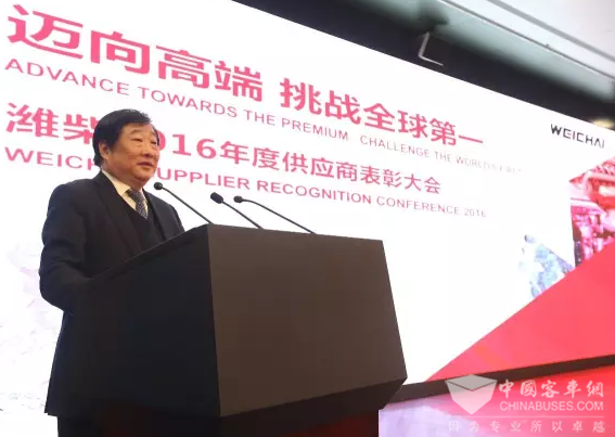 2016年12月20日,潍柴集团召开年度供应商表彰大会,谭旭光董事长为优秀供应商颁奖并作重要讲话,希望广大供应商与潍柴携手并进,共同迈向高端,挑战全球第一。